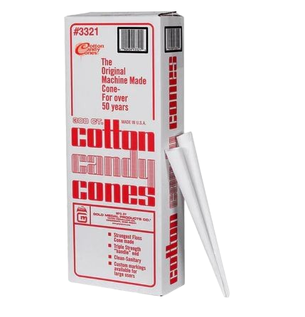 Add some old fashioned flair and signature flash to your party! A Gold Medal original, our Plain Cotton Candy Cones #3321 make a big impact and an easy and fun way for you to enjoy your sweet treats. Made from heavyweight southern kraft paper and triple wrapped at the handle. 0)