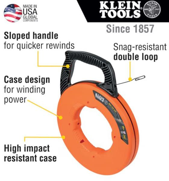 The Klein Tools' 240-Foot High Carbon Steel Fish Tape is perfect for wire runs associated with commercial, residential and voice-data-video installations.