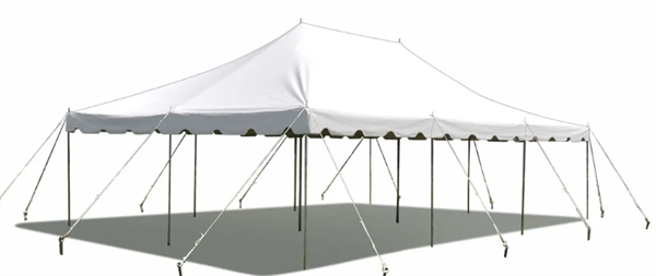 This tent is great for all parties! 20 x 40 pole tent holds up to 100 people with 10- 8' tables and 100 chairs or 8- 5' rd tables and 64 chairs. Pole tents need to be stake down, so you must allow for a