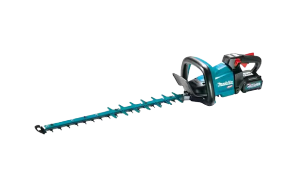 With zero emissions and lower noise, the 40V max XGT Brushless Cordless 24" Hedge Trimmer Kit (GHU02M1) is a welcome solution for professional landscaping clean-up applications. The Makita-built brushless motor delivers up to 5,000 SPM for powerful trimming. It has three speed options to manage power and run time.The 24" dual-action double-sided shear blade provides optimal performance. A reverse function clears jams. The hedge trimmer can get up to 6 hours of run time using one (1) 40V max XGT 4.0Ah Battery. The 5-position rotating rear handle provides increased comfort during vertical and angle trimming. A tip guard protects the end of the cutter bar against hard surfaces.For added durability in harsh job site conditions, Extreme Protection Technology (XPT) is engineered for improved dust and water resistance. The power head also features IPX4-rated weather-resistant construction for added durability.